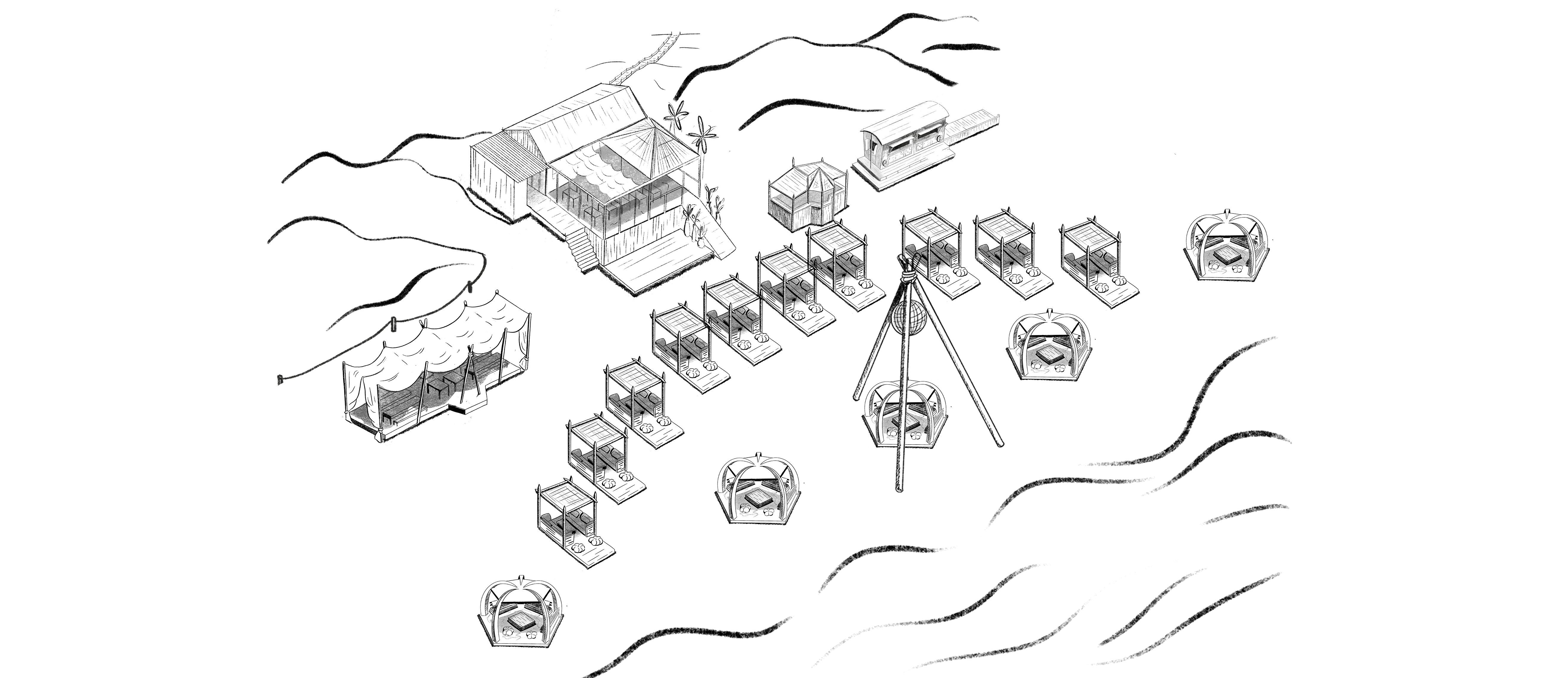 This beach layout is for illustrative purposes only. Spaces and shade are still being set up for the summer season, so the arrangement may change and sun exposure cannot be guaranteed or selected at booking.